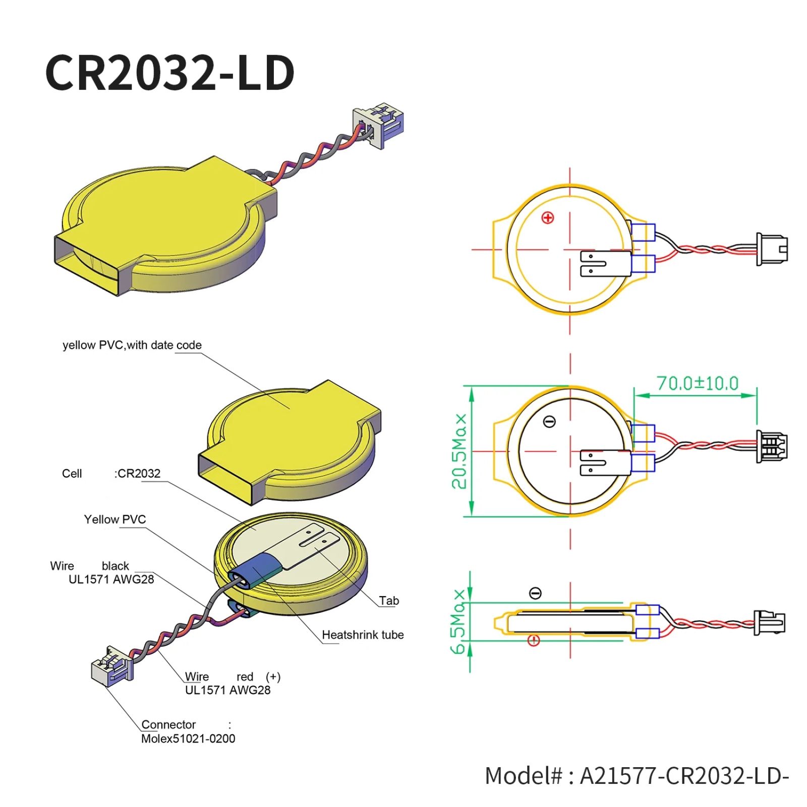 • CMOS/RTC Knopfzellenbatterie - mit Molex-Stecker - CR2032