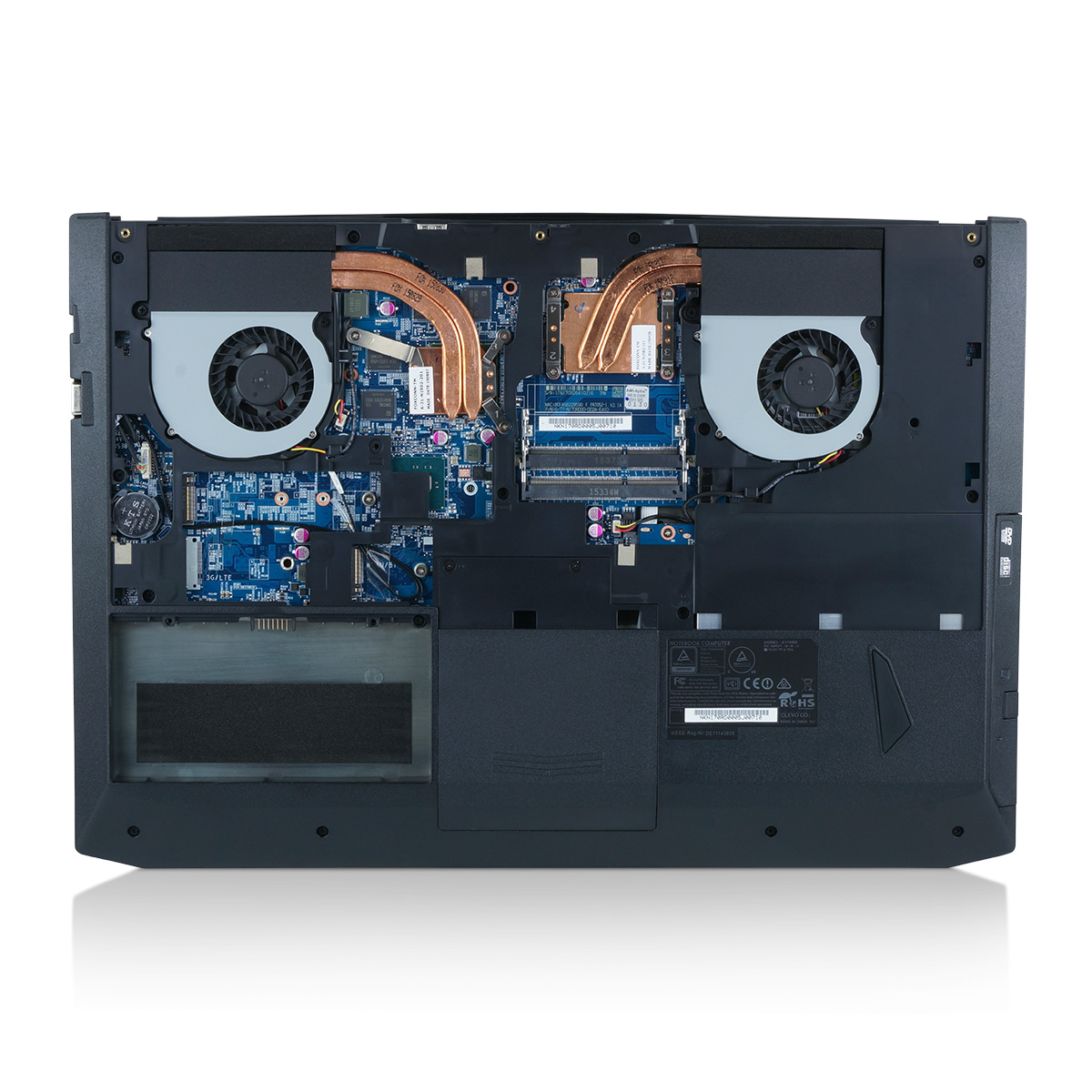 Festplatte 2: Standard 2,5" HDD oder SSD, max. 7mm Bauhöhe – Anstatt DVD- oder Blu-ray-Laufwerk!
