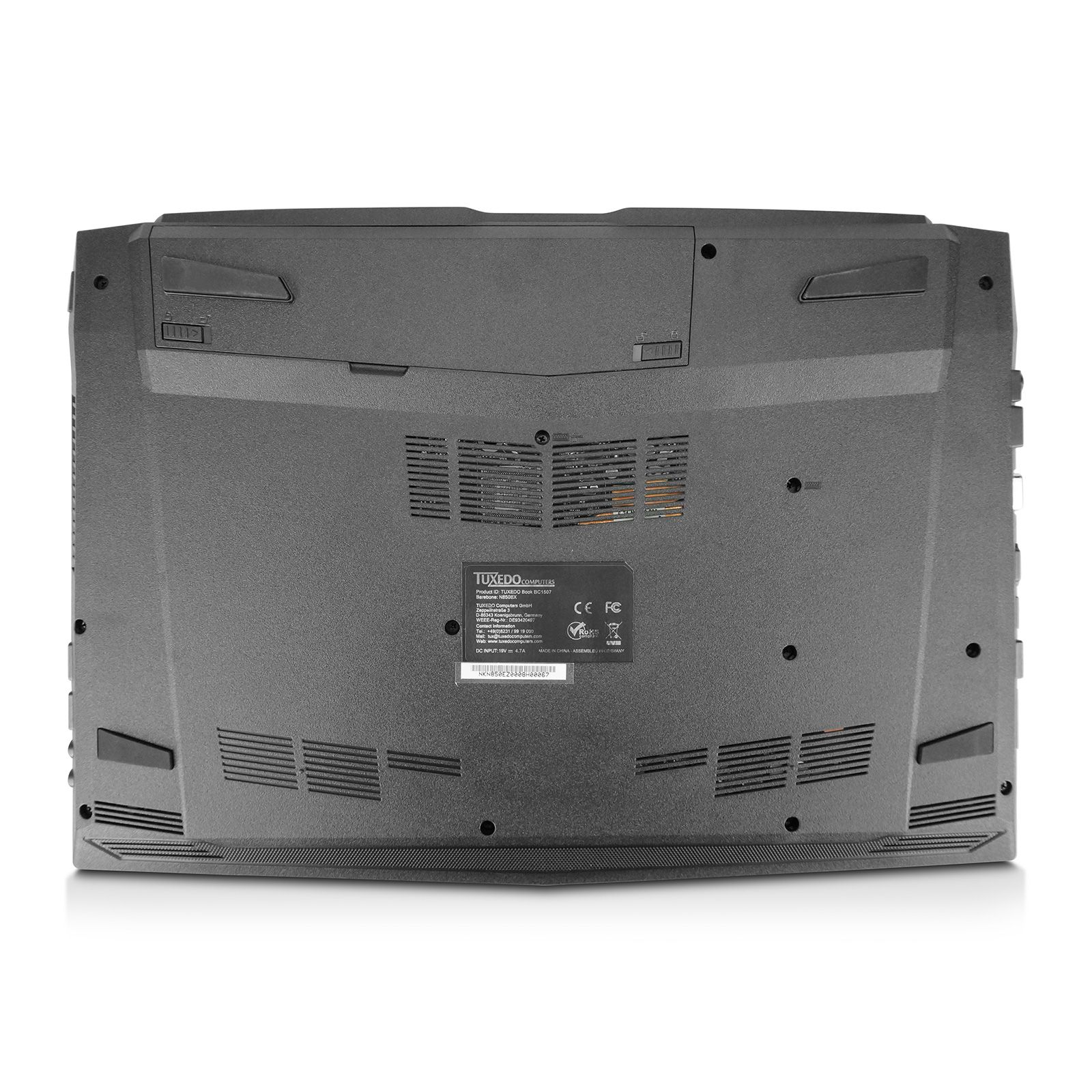 Das formschöne und robuste Kunststoffgehäuse des TUXEDO Book BC1507 ist besonders Verwindungssteif.