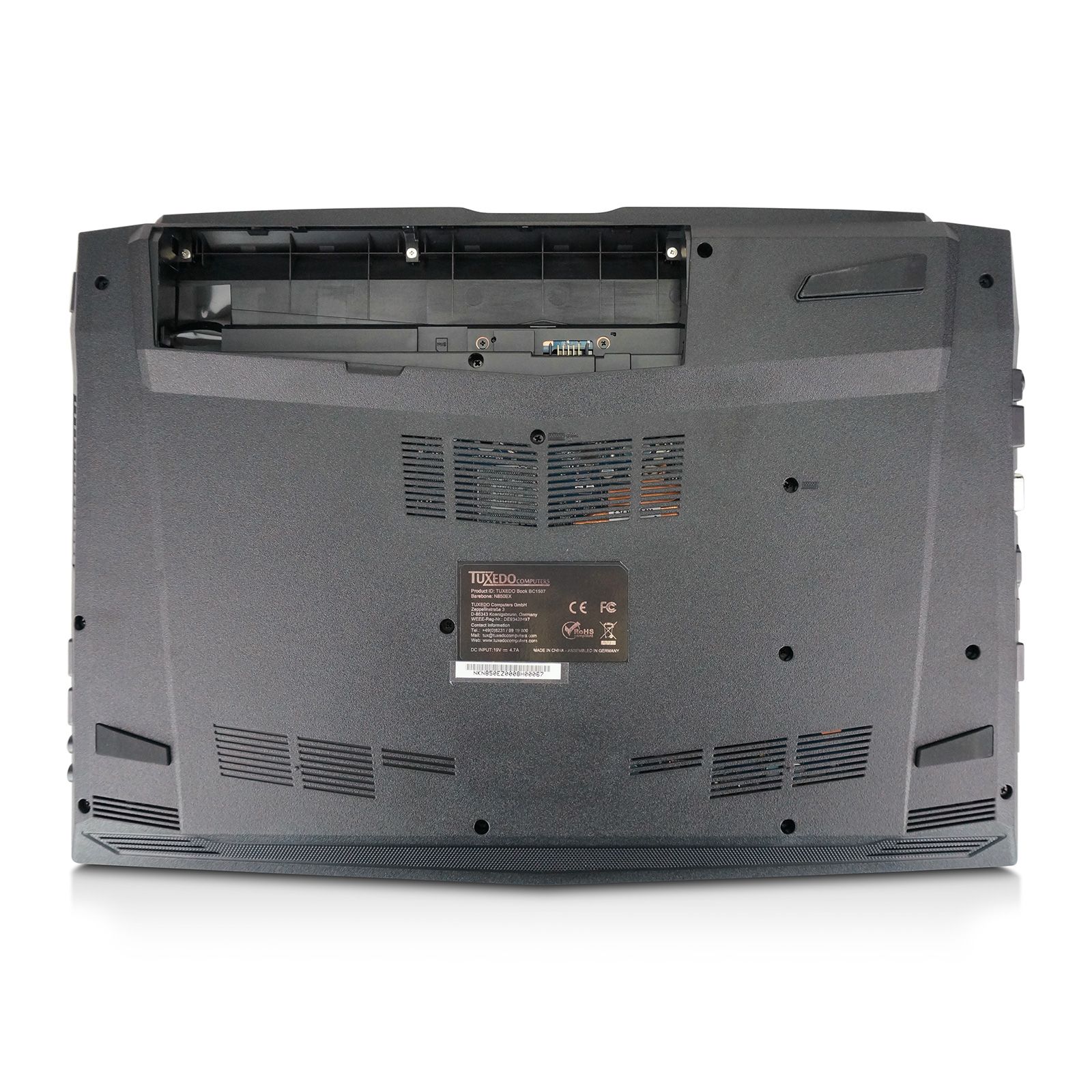 Der Betrieb aller TUXEDO Books ist auch ohne Akku möglich. Häufig wird Anwendern geraten, im dauerhaften Netzbetrieb den Akku zu entfernen um diesen zu schonen. Dank FlexiCharger ist dies nicht nötig. Weitere Informationen