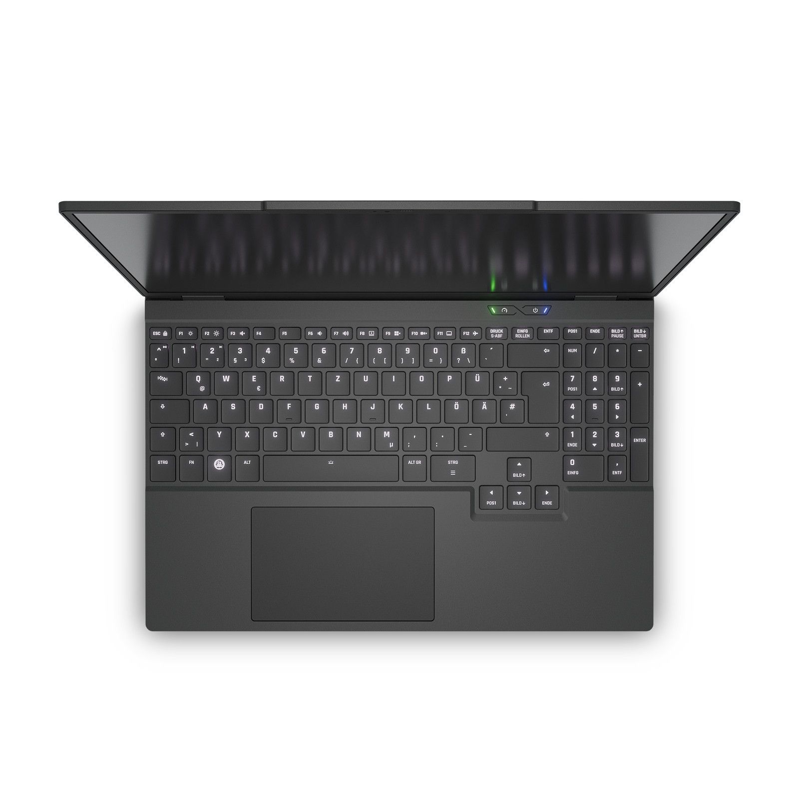 Farblich einstellbare Tastaturbeleuchtung (Linux: Einfarbig | Windows: Per-Key-Beleuchtung), d.h. beleuchtete Beschriftung und Tastenumrandung. Helligkeit per Tastendruck wähl- & deaktivierbar.