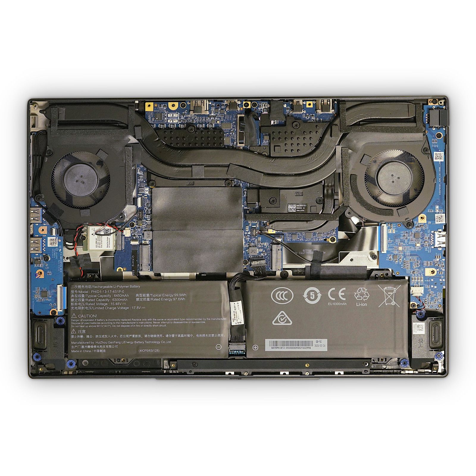 Maximal großer 99 Wh Akku, Lithium-Polymer, wechselbar / im Gehäuse verschraubt.