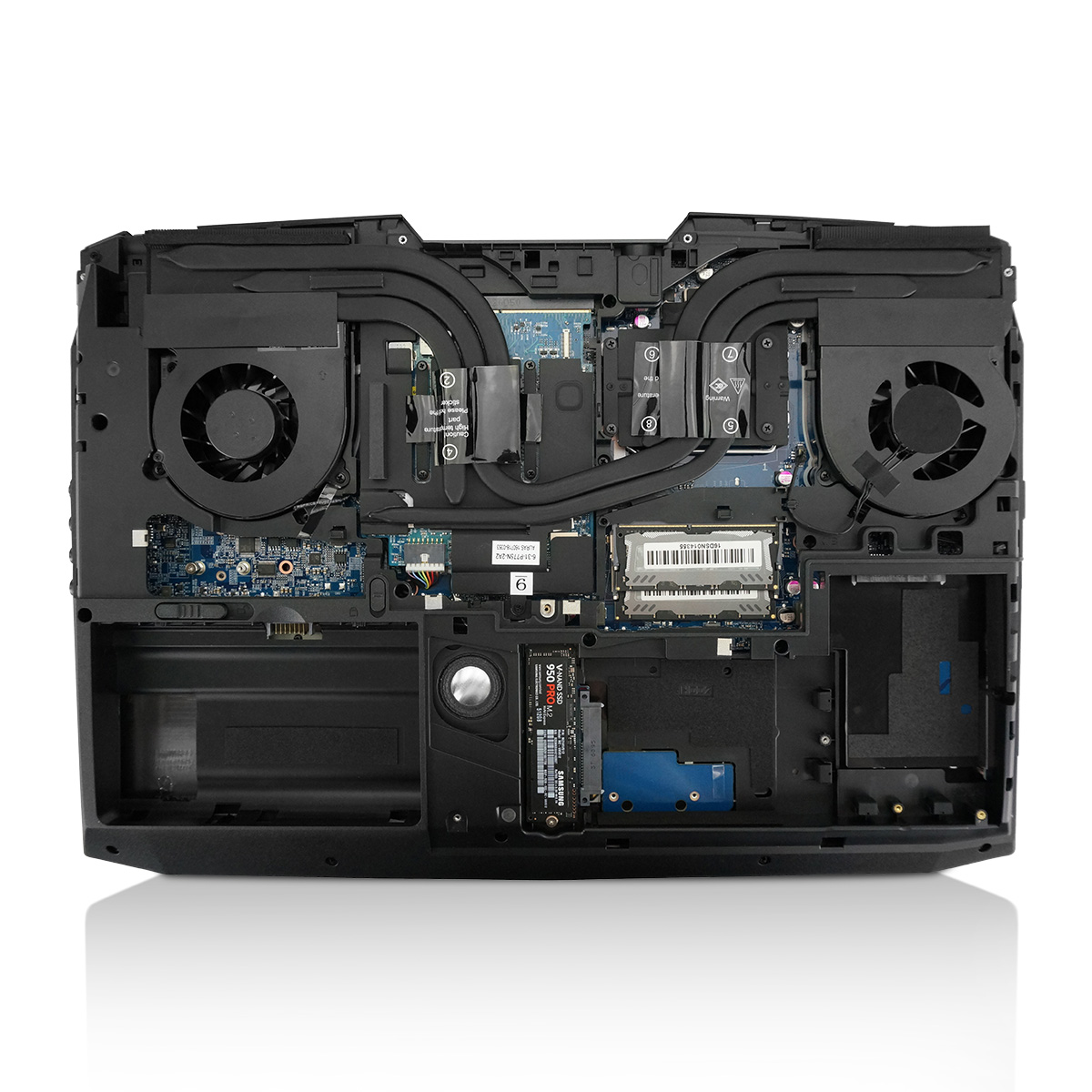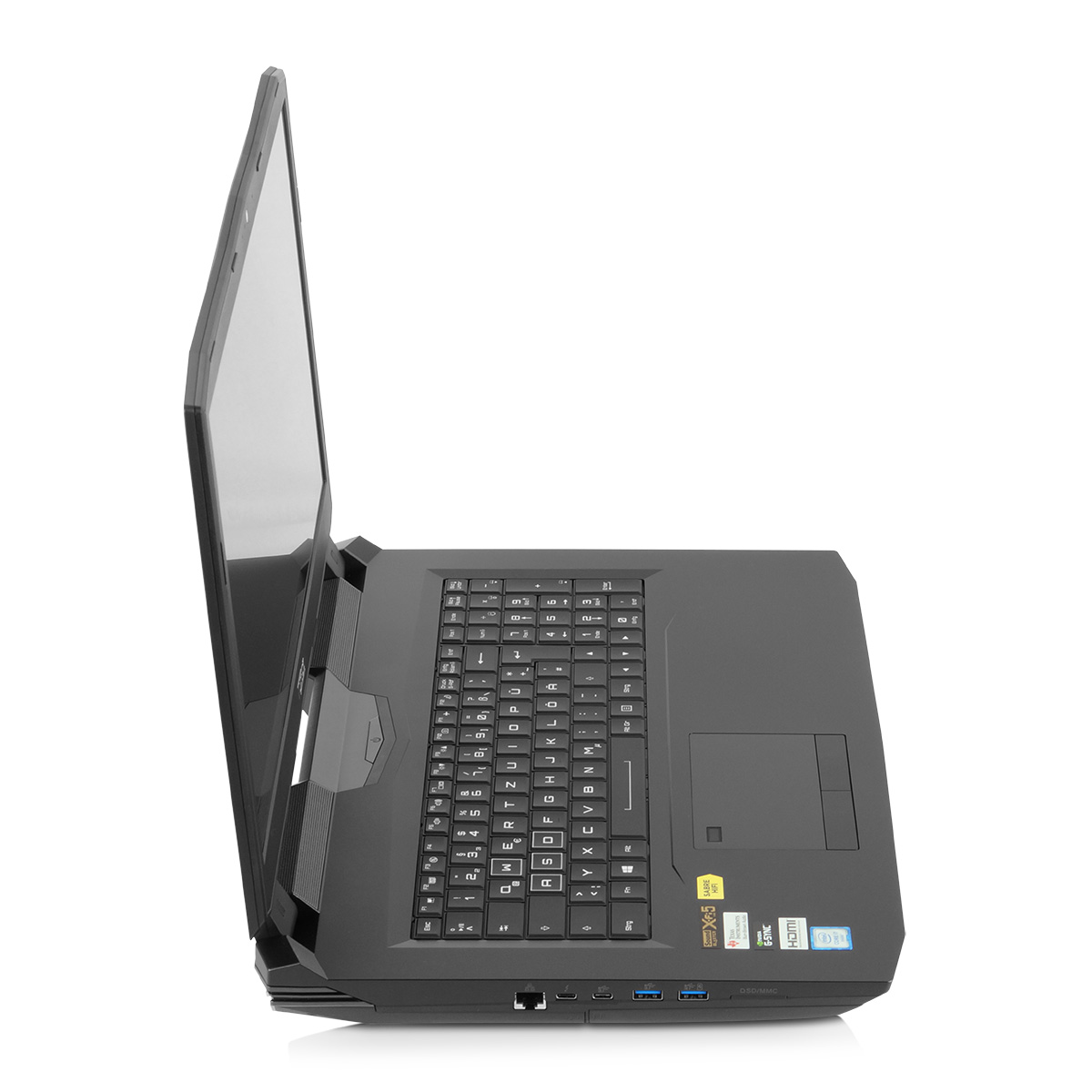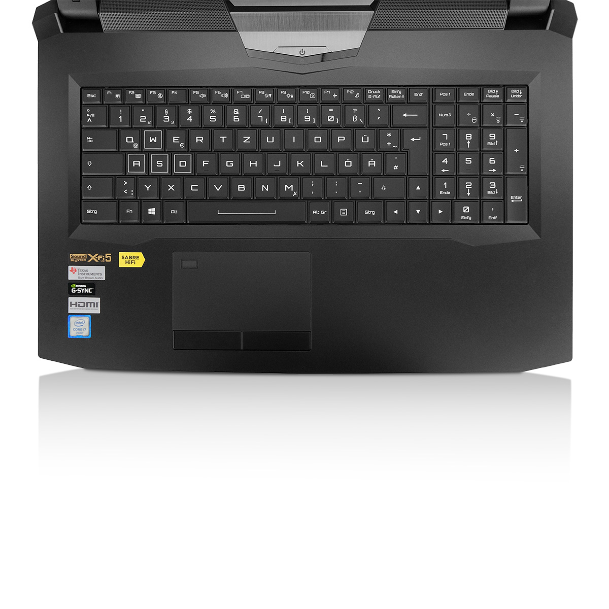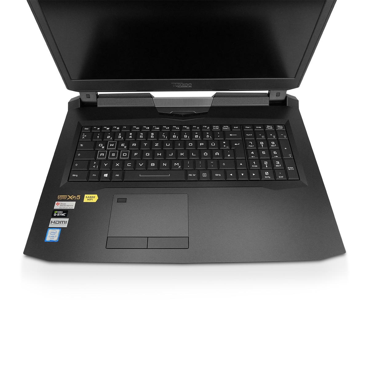 The symmetrically arranged cooling system, which is equipped with two extra-large fans, each cooling CPU and graphics card via three heatpipes, is synchronized via two additional heatpipes and thus works in parallel on the cooling of the system, which is as quiet as it is powerful.