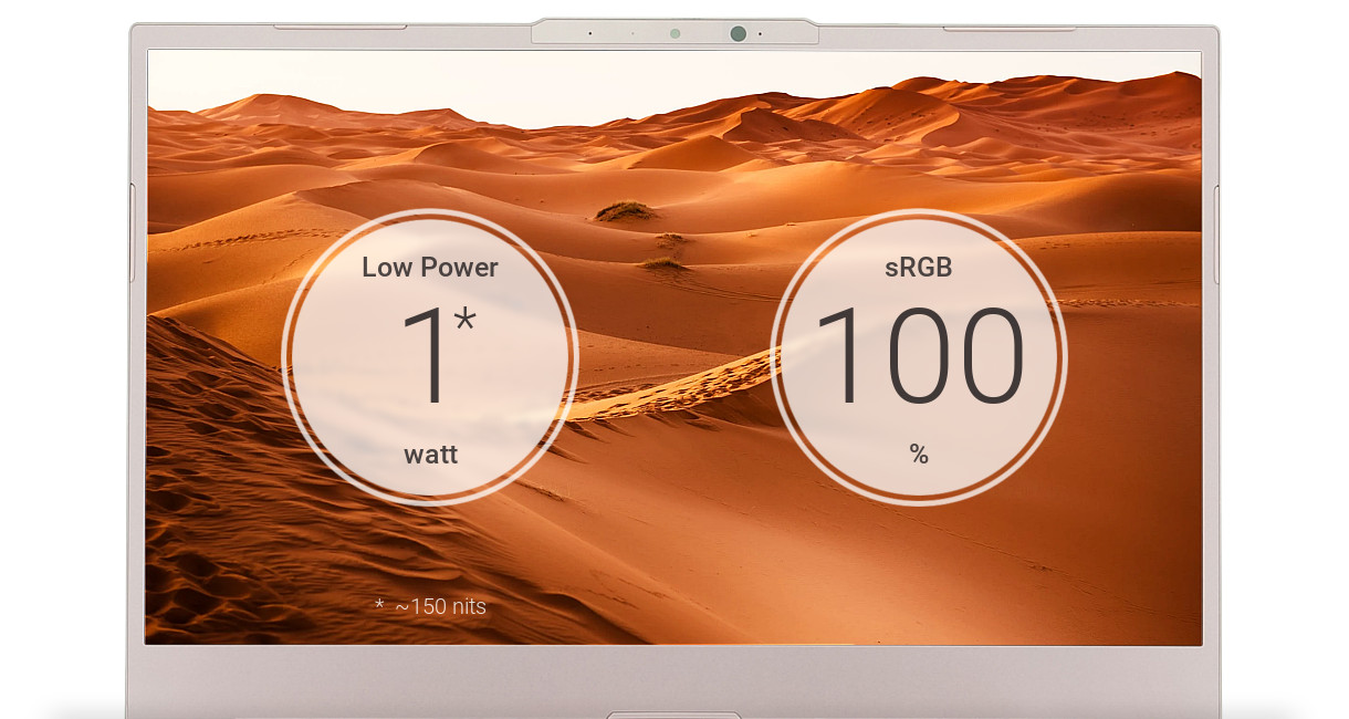 Another unique feature of the TUXEDO InfinityBook S 14 is the innovative Low-Power display, which only draws about 1 watt of power at a brightness of ~150 nits and thus consumes about 50% less power than conventional displays!