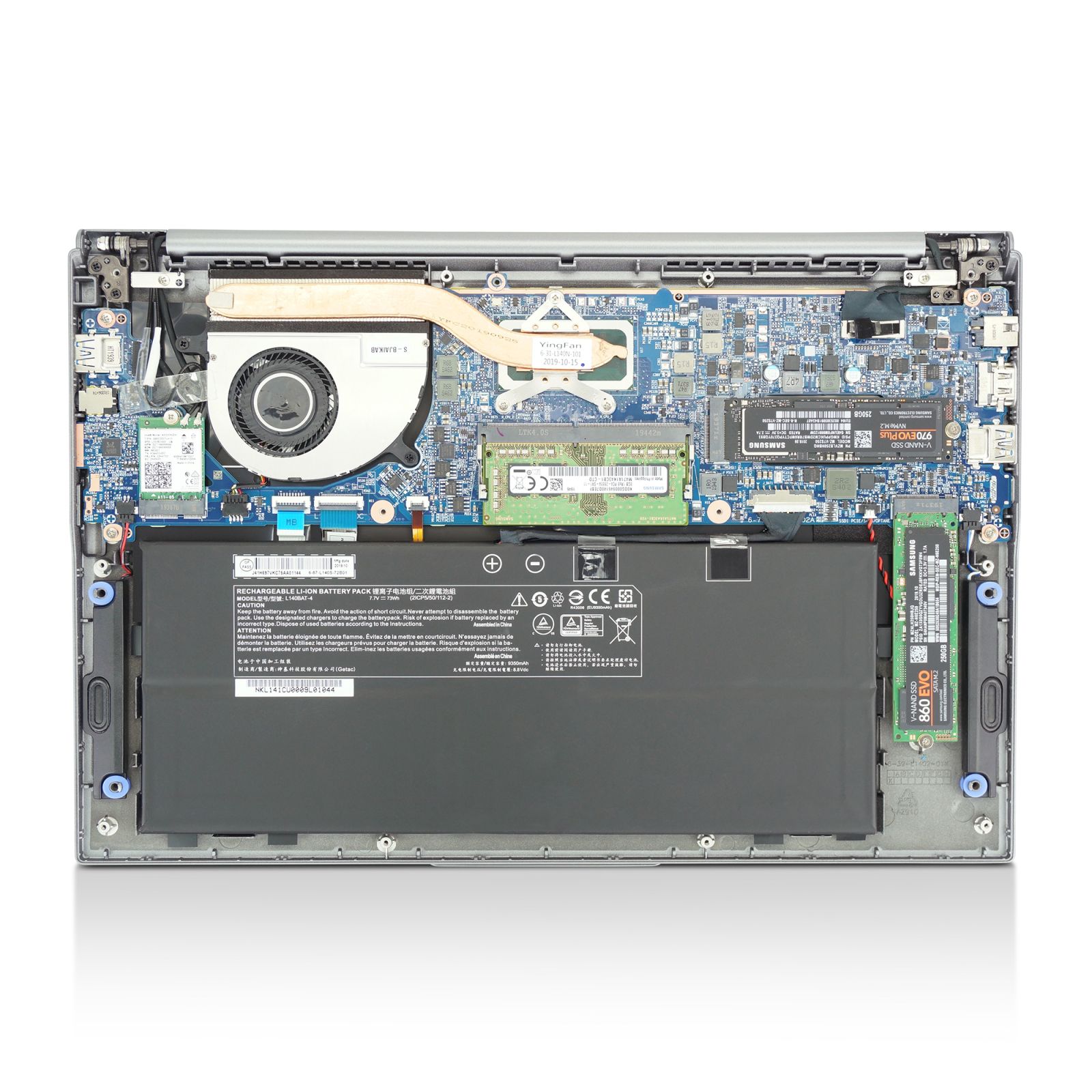 The large and internal screwed 73 Wh lithium-ion battery provides runtimes of around 14 hours in practical use (video streaming via WLAN @ 150 nits). In most power-saving idle mode even a maximum battery life of up to 24 hours is achievable.