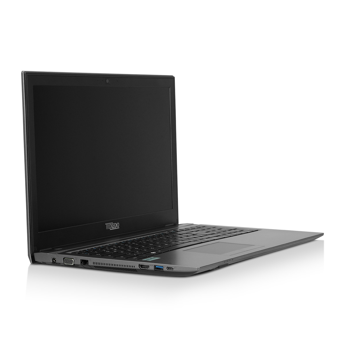 The 15,6 inch large screen is as with all TUXEDO Books matte. Thanks to this size, you have a full-size keyboard and a numeric keypad at your disposal! I. e. You can work almost like an external keyboard on a stationary PC.