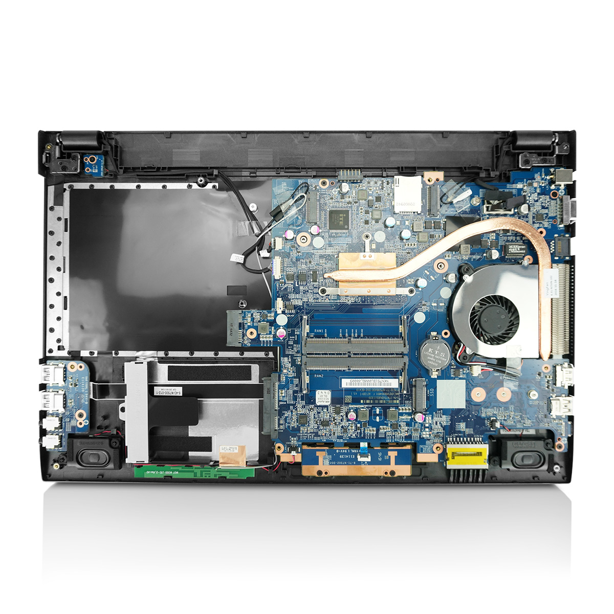 Hard drive 2: Standard 2,5" HDD or SSD, max. 7mm height – Instead of DVD or Blu-Ray drive!